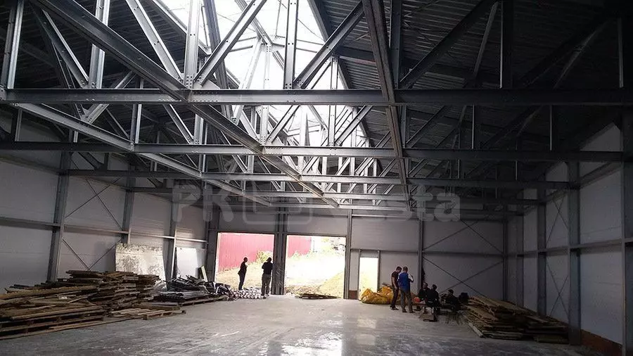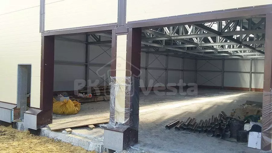 PK Vesta announces the erection of a pre-engineered steel supermarket in Tula, Russia (Series INDI - 15W x 30L x 4H) The whole light weight load-bearing structure will be manufactured from the zinc-coated cold-formed profiles (S350, I grade of zinc coating, 275 g/sw.m.) The structure will be covered by the classical nonflammable wall and roof sandwich panels with the thickness of 100mm and 120mm accordingly. The building kit includes all fittings and fasteners. The erection of a steel building will be finished by the end of Fall 2015.