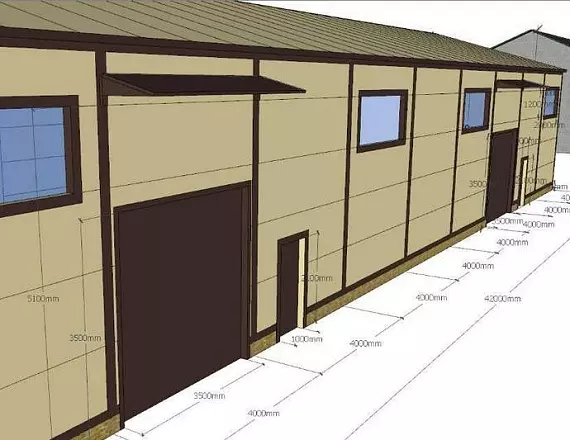 Accessories:All high-strength bolts (except anchor bolts), full trimming package, diagonal ties and connecting elements are included. Gates, doors, windows, skylights, canopies, transparent panels, solar panels