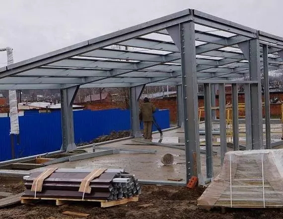 The steel buildings are distinguished by a flat roof, inclined to the frame. During installation, additional supports along the axis are required, therefore, such structures are not suitable for installing certain types of large equipment and parking large equipment. Buildings are among the most budgetary, since the width of objects does not exceed 10 m, their scope is limited.