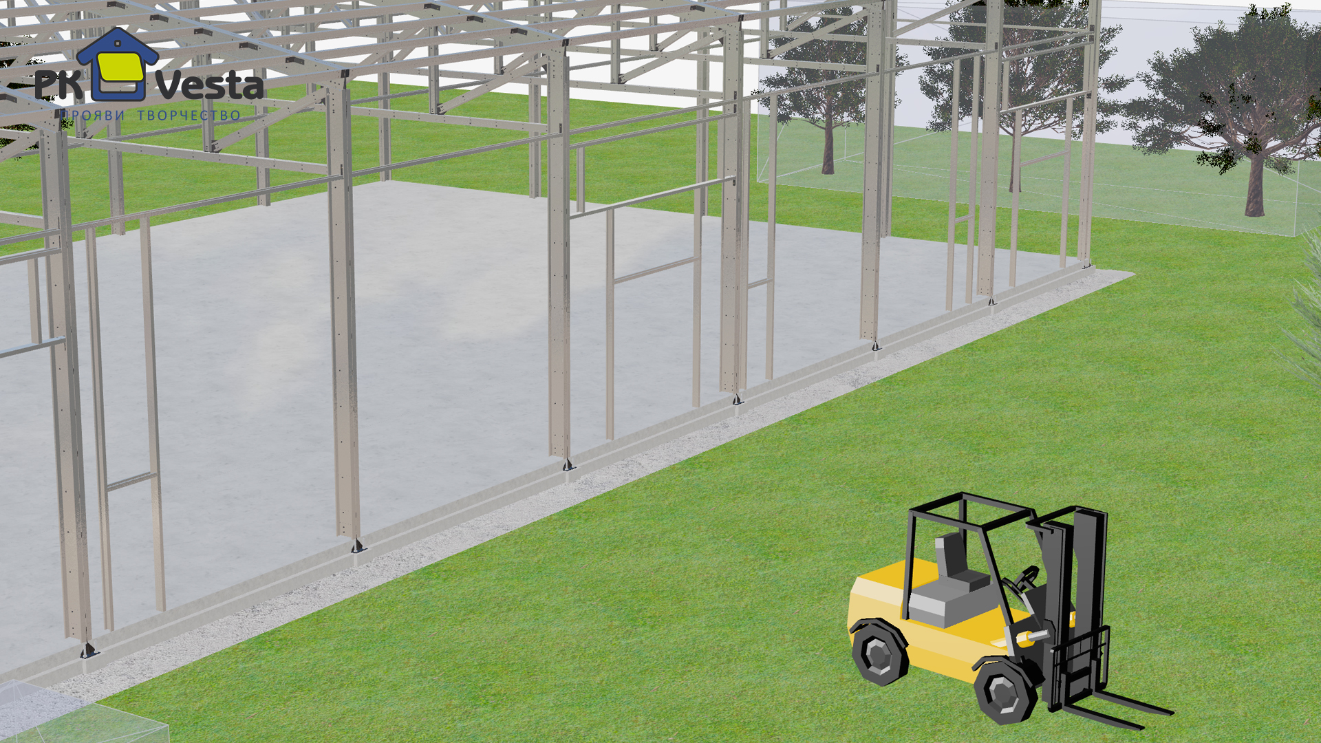 208. Pre-engineered warehouse/production hall 24W x 62L x 6H made out of LSGF for a confectionery factory in Venev, Russia