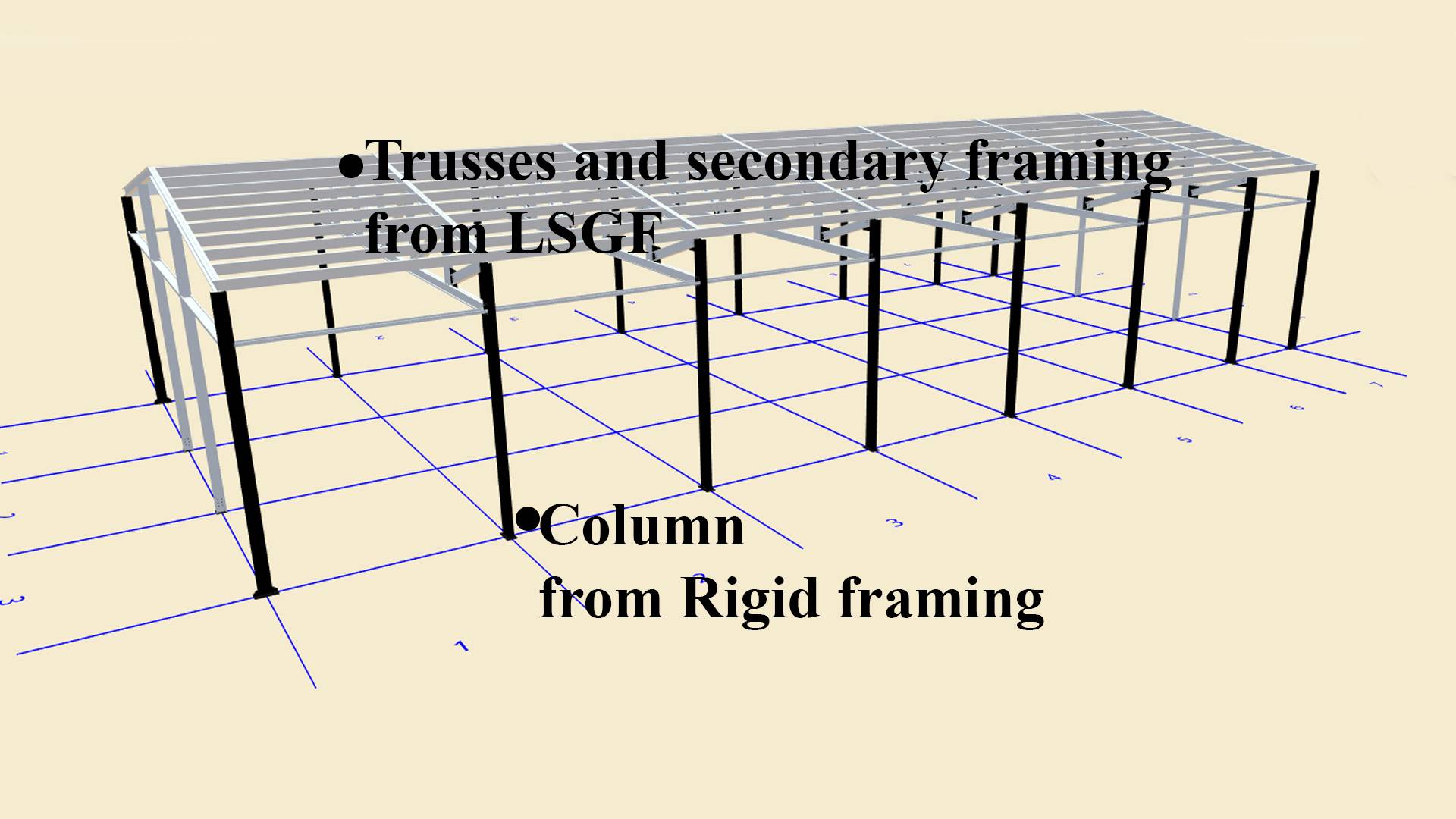 Despite almost the same strength indicators (tensile, compression, shear, bending, etc.), LSGF frames (cold-formed galvanized profile) can minimize building metal consumption by 20-30% when compared with frames made out of a classic welded or hot-rolled beam with spans up to 30m wide and 6m high (inside the wall)